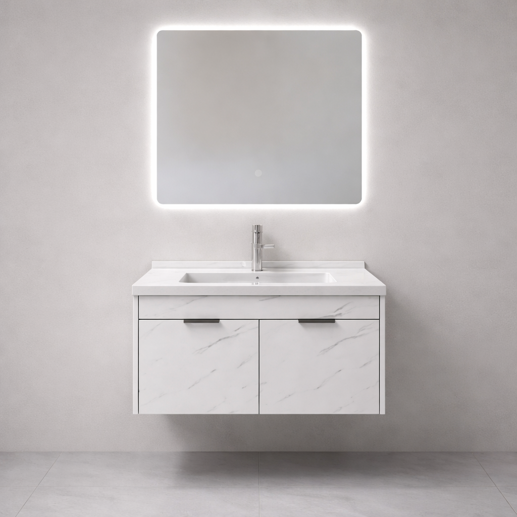 مغسلة ديكور مصنوعة من خشب PLYWOOD مقاوم للمياه مقاوم لتغيرات اللون ومقاوم للتشققات مع مراية ليد بضمان 5 سنوات
