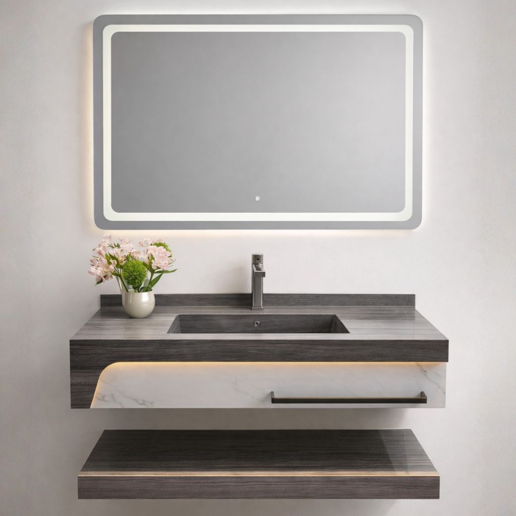إذا كنت تبحث عن مغسلة رخام شلال مع مرآة ليد وحامل مناشف، فإن موديل A001 خيار مثالي للفخامة والوظائف العملية.